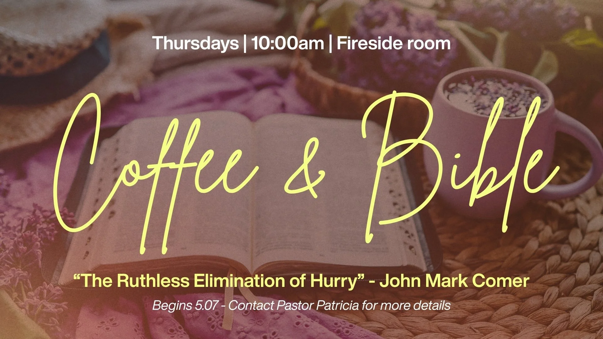 Coffee & Bible with Pastor Patricia - We are a group of women who study the scripture, reflect, share experiences, and pray for each other. We would love to have you!